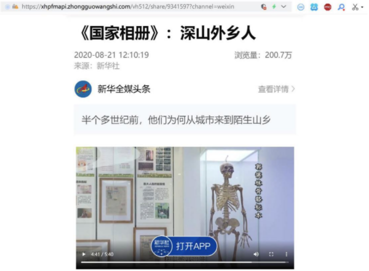 2020年8月,团队制作和整理的亮点素材被收录在新华社《国家相册》,当晚点击量突破200万人次