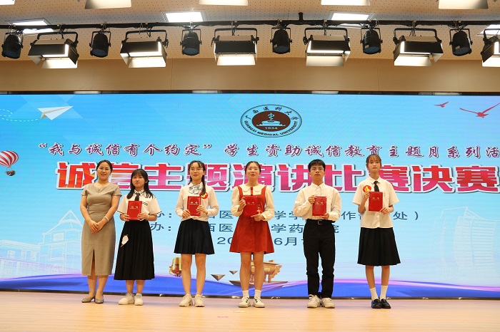 为更好地宣传国家资助政策,营造感恩于心、诚信于行的良好氛围,提升学生的诚实守信意识,增强资助育人的成效,2023年6月13日晚,由学校学生工作部(处)主办、药学院承办的2023年足球彩票 “我与诚信有个约定”演讲比赛决赛在武鸣校区图书馆演讲厅顺利举行。