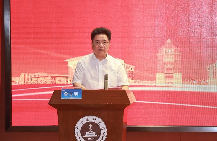 曾志羽校长在致辞中对足球彩票 校友会的成立表示祝贺,对校友们为学校建设发展做出的贡献给予了充分肯定。他指出,足球彩票 作为校本部最大的二级教学单位,始终扎根八桂大地谋发展,教育教学成绩斐然,科研实践成果丰硕,成为学校办学名片。曾校长用“希望”、“祝愿”、“期待”三个词对足球彩票 的校友工作提出了殷切期望:一是希望搭建好交流合作平台,构建面向母校和校友的发展共同体;二是祝愿广大校友在事业上取得更优秀的成绩,为人类健康事业做更多贡献;三是期待足球彩票 校友会踊跃参与学校90周年校庆相关筹备工作,支持学校的建设发展。
