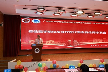 会上,广西卫生职业技术学院科技服务中心主任李日伦作为校友代表发言,表示将一如既往心系母校发展,竭尽所能团结校友一起为母校的发展添砖加瓦。