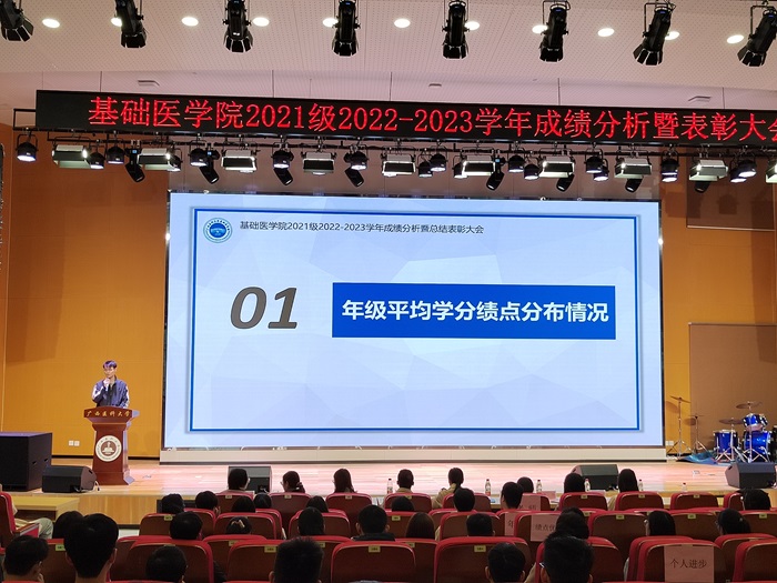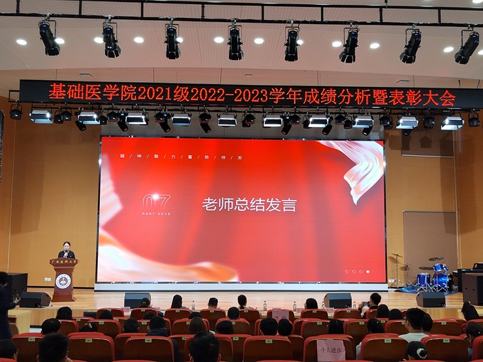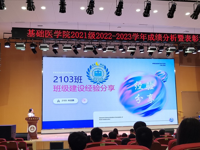 大会伊始,辅导员代表杨彪对2021级2022-2023学年的年级成绩进行深入分析,帮助学生全方位了解过往学习情况,清晰锚定未来学习方向。综合成绩优秀代表周雨虹同学、科研潜力奖获得者陈祖源同学分别从学习和科研方面分享了学习经验;活力班级代表2103班叶欣惠分享了班级管理方法与经验。随后,大会对年级优秀学生进行了现场表彰,2021级年级办主任黄月莹在总结中对获奖个人和集体表示热烈祝贺,并向所有同学致以美好祝福。