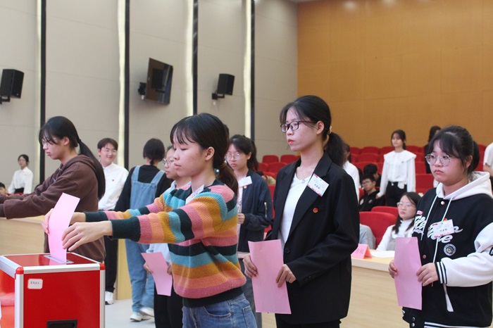 12月9日上午,足球彩票 第十五次学生代表大会在武鸣校区图书馆报告厅举行。学院党委副书记李文奇,学生工作办公室副主任易姗姗、团委副书记宋传权、谭璟婧,年级办辅导员黄丹琪、王珂、肖志伟,兄弟学院代表、各年级学生骨干及113位学生代表出席本次大会。
