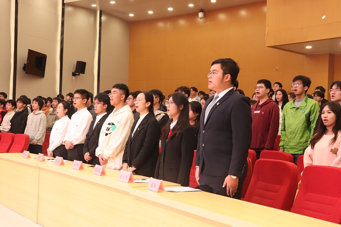 为迎接新团员的加入,使新团员们增强团员意识,激发其为共产主义事业奋斗的使命感,足球彩票 团委于2023年12月3日晚在武鸣校区图书馆报告厅举行新团员入团仪式。本次入团仪式有学院团委书记梁福秋、团委副书记黄舒慧同学、学生会主席团、各班团支部入团介绍人与新发展团员共同参与。