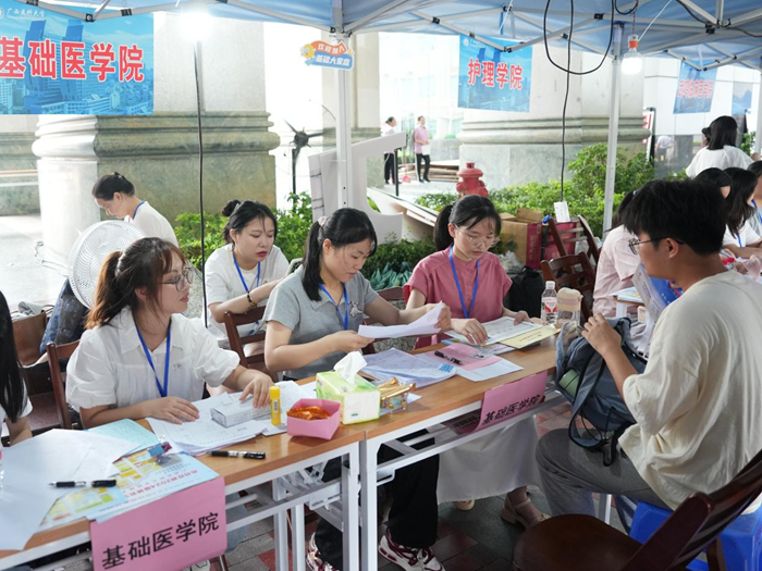 天朗气清,惠风和畅。9月5日,足球彩票 迎来了来自全国各地的2024级研究生新生,他们带着对医学知识的渴望和对未来的憧憬,在这里开启了他们的新征程。学院院长罗彬、副院长蓝秀万及教研科、院办相关人员参与现场迎新工作。
