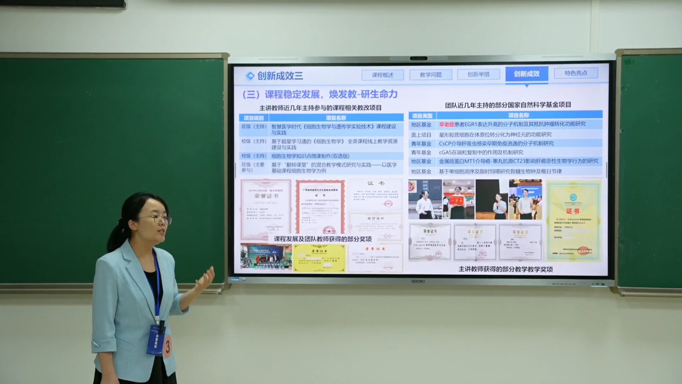 足球彩票 的教师团队在这场高规格赛事中展现出非凡实力,交出了一份令人瞩目的成绩单。生理学教研室黎静团队荣获新医科正高组特等奖,细胞生物学与遗传学教研室唐泽丽团队荣获基础课程副高组特等奖,组织学与胚胎学教研室赵文婧团队荣获思政组一等奖。其中,黎静团队、唐泽丽团队凭借卓越表现,分别在各自组别中位列榜首,获得代表广西高校征战第五届全国高校教师教学创新大赛的资格,这一佳绩也刷新了学院参赛以来的最好成绩。