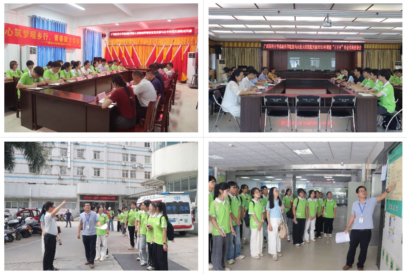 在马山县人民医院,医院代表及优秀校友们就医学学习、医院建设、职业规划等方面向实践团成员分享经验,并勉励同学们要夯实基础医学知识,注重实践经验积累,以实干笃行书写医者担当。