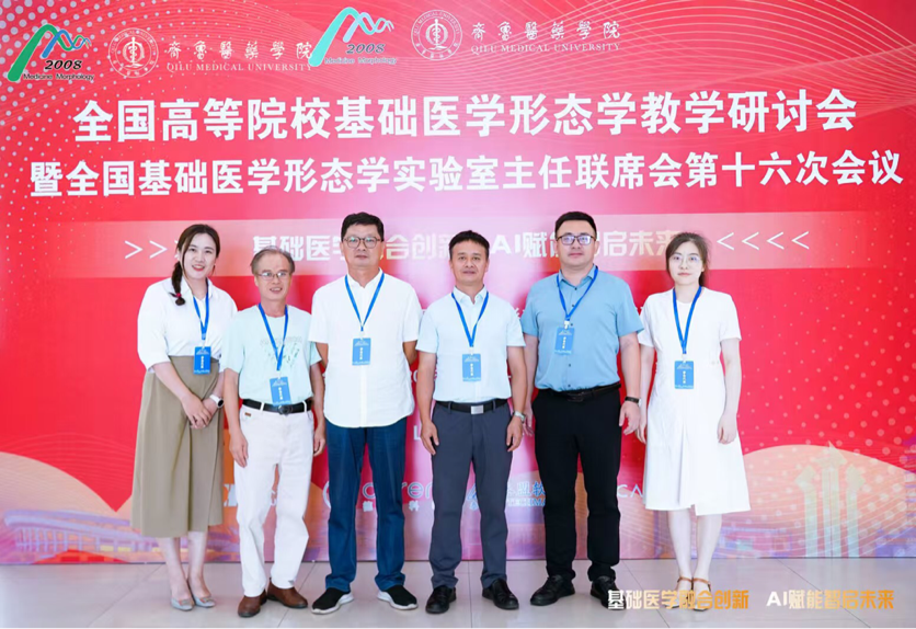 2025年7月16日至20日,由齐鲁医药学院承办的“第十六届全国高等院校基础医学形态学教学研讨会暨实验室主任联席会”在山东淄博隆重召开。本次会议以“基础医学融合创新,AI赋能智启未来”为主题,吸引了全国近百所医学院校的专家学者齐聚一堂,共同探讨医学教育数字化转型的前沿趋势。我校教务处处长刘登宇和基础医学院副院长战廷正应邀带队参会。